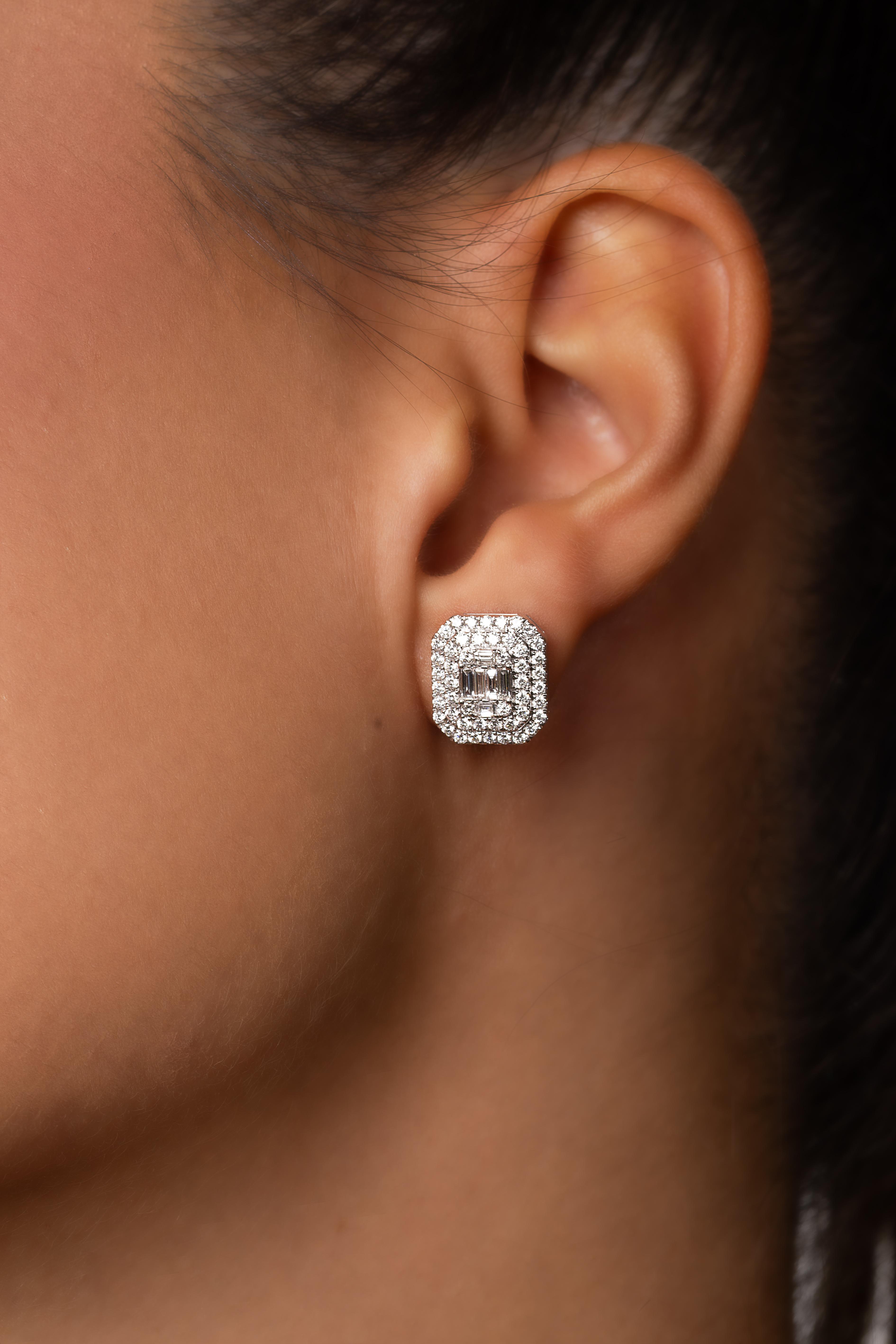 Σκουλαρίκια με Μπριγίαν Βάρος πετρών Round brilliants 0.82ct -Baquette brilliants 0.30ct