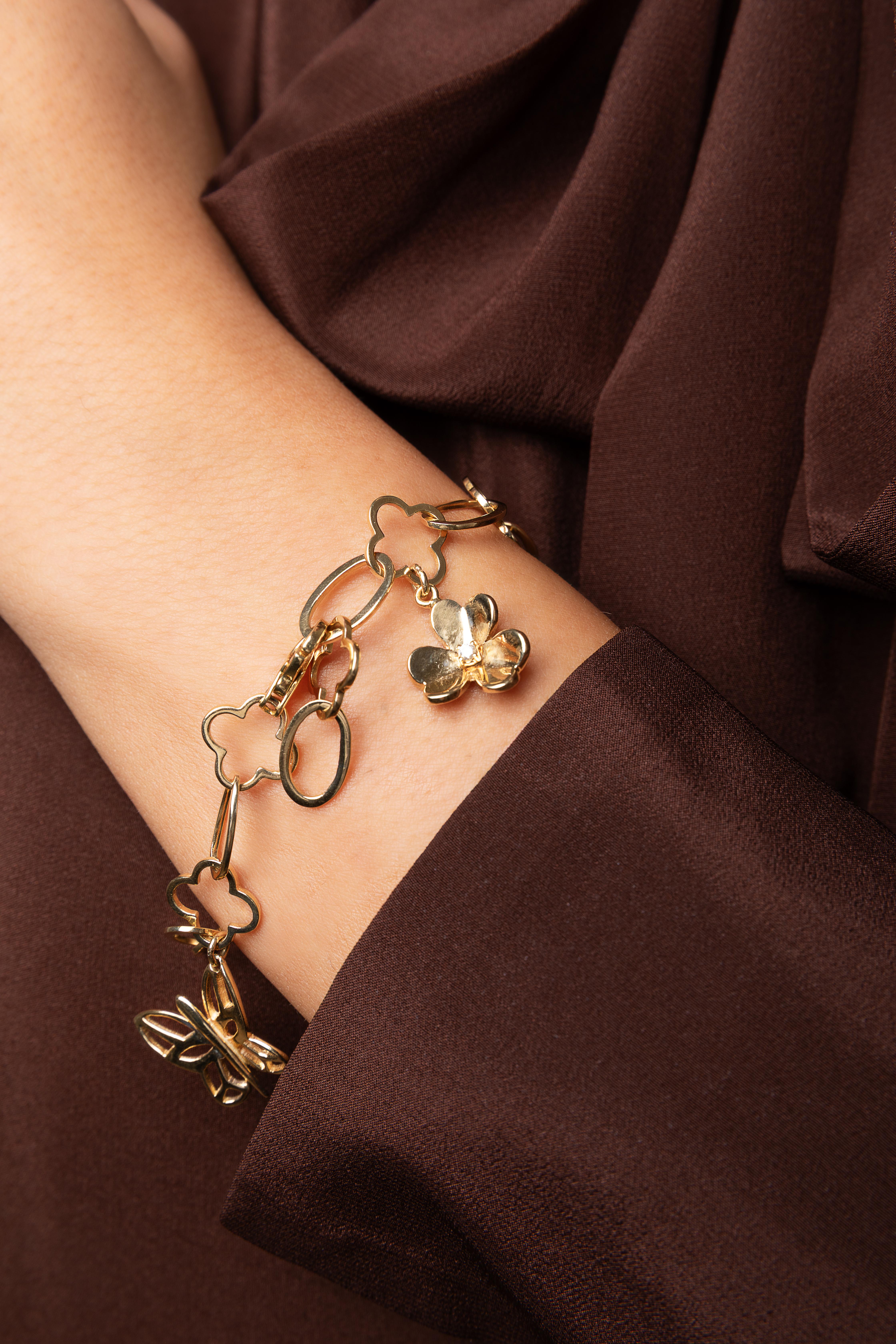 18 καράτια χρυσός ,δια χειρός κόσμημα με 3 μοντίφ που κρέμονται Σταυρός ,λουλούδι με Μπριγίαν στο κέντρο & πεταλούδα